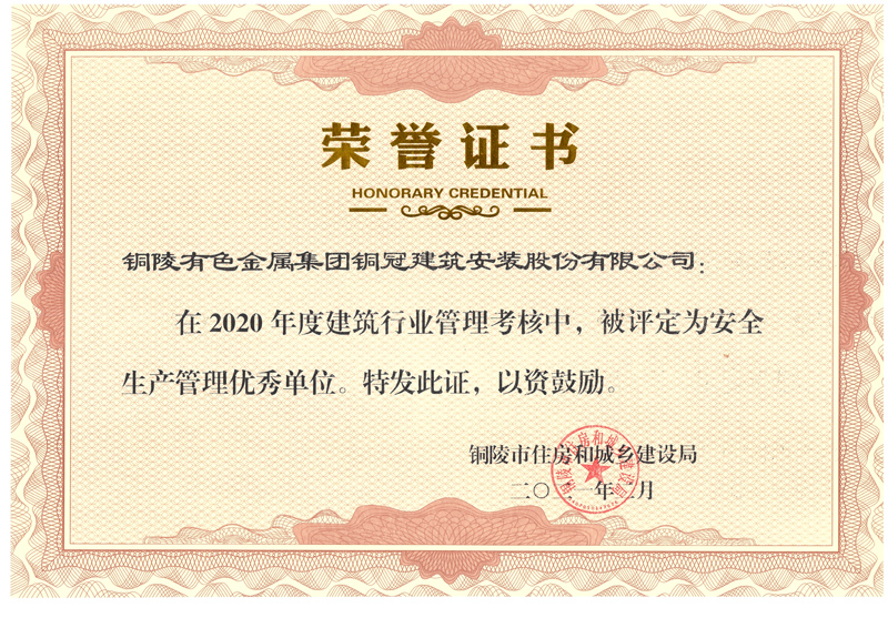 • 銅陵市2020年度安全生產(chǎn)管理優(yōu)秀單位